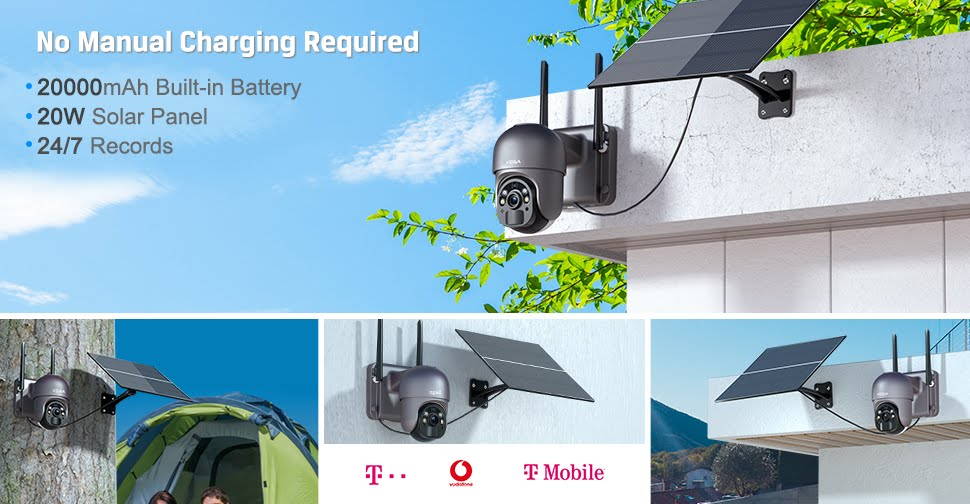 Newly-upgraded 4G Cellular Security Camera 24/7 Recording