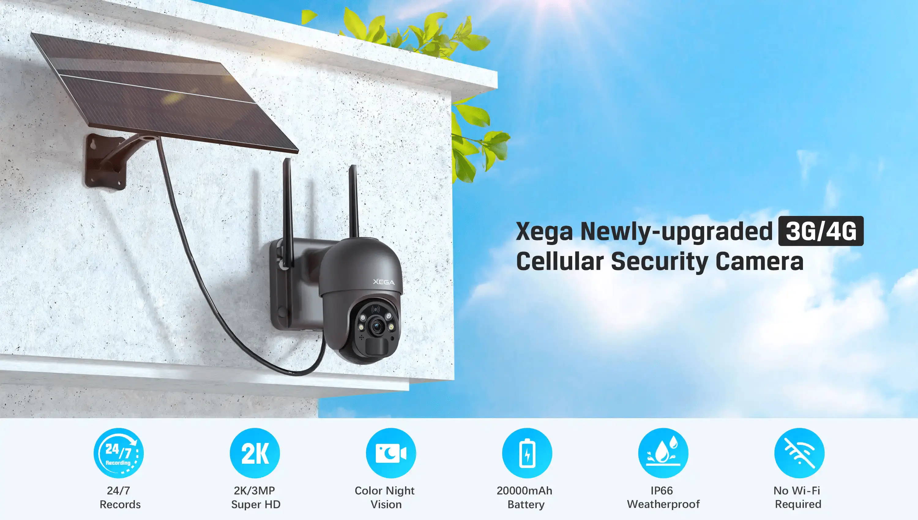 The XEGA S20 Wireless Outdoor Cellular Security Camera works within 4G LTE coverage, no WiFi required. Bring a wireless experience to gardens, country houses and construction sites. Built-in 10000mAh rechargeable battery, this outdoor wireless camera can work anywhere without cables. The uninterrupted power supply from the solar panel will provide the camera with long-lasting working time. This surveillance camera adopts IP66 waterproof design, you don't need to worry about rain and snow weather may damage the camera.